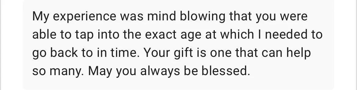 Inner child healing is deep intentional work that cannot be rushed. In order to create true safety and integration, we will focus on visiting one specific age or memory per 30-minute segment.